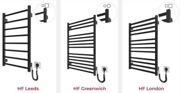 Головна особливість рушникосушарок HF — гармонійне поєднання форми та змісту. Це не просто нагрівальні прилади, а справжні інтер’єрні акценти. Наприклад: