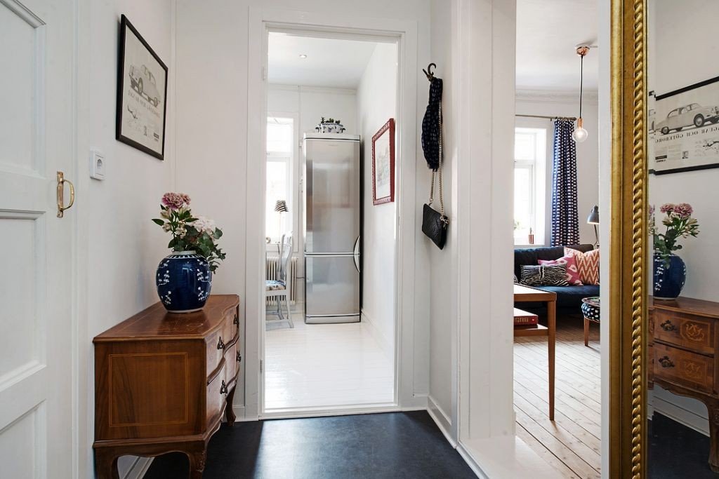 Его страсть к светлым цветам (особенно белому) и небольшому количеству мебели и украшений способствует созданию простора даже при небольших размерах. Кроме того, это хорошая база, к которой можно добавлять элементы других стилей – например, винтаж. Это означает, что, несмотря на свою простоту, он никогда не будет скучным. Как применили все эти трюки в данной квартире?
