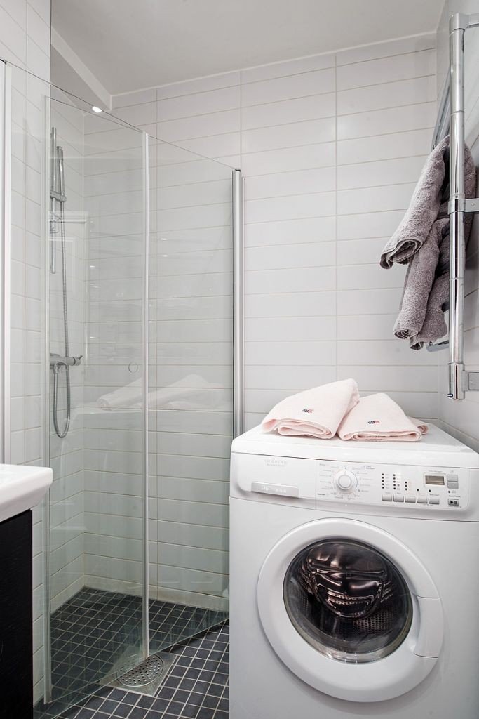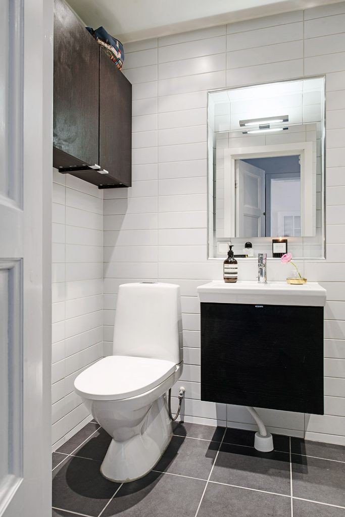 Несмотря на предсказуемую ванную комнату, вся планировка этой двухкомнатной квартиры заслуживает внимания. Это яркий пример классического скандинавского подхода, экономии цвета и функциональных решений при небольшом размере квартиры. Те, кто любит этот стиль, найдут что-то для своего вдохновения.